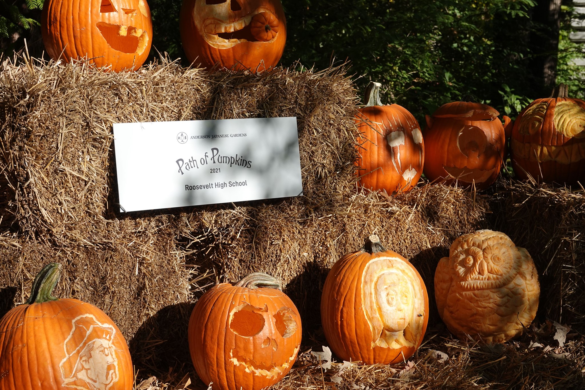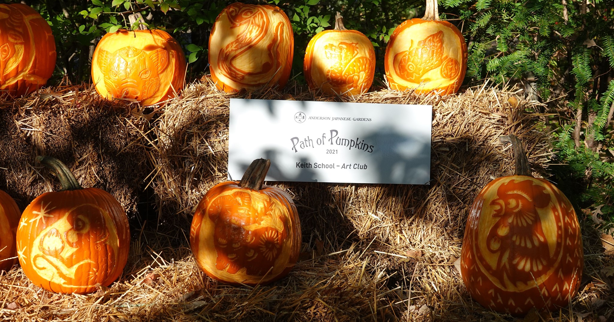 The Path of Pumpkins Returns! Anderson Japanese Gardens has partnered with schools from across the region to provide a new Halloween-themed outdoor experience. Middle and high school students will showcase their pumpkin carving creativity within individual exhibits consisting of multiple carved pumpkins, creating the Path of Pumpkins. Each admission will be provided with a voting card. Be sure to fill it out and drop it off in the ballot box or hand it to the Gift Shop Team! The three schools that receive the most votes will be awarded cash prizes!  The winning schools will be announced on Anderson Gardens social media!